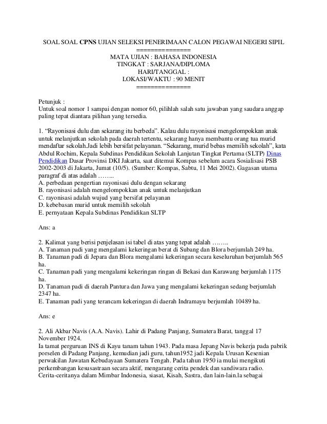 Soal cpns bahasa indonesia pembahasan Sumber : www.slideshare.net